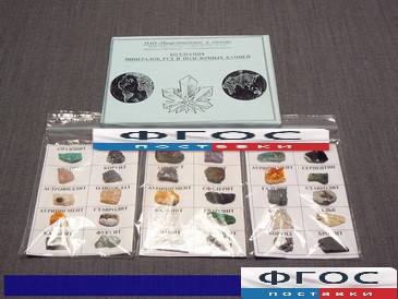На каждой планшетке, форматом 120х90мм, наклеены по 10 шт. различных минералов, представляющих собой горные породы, рудные минералы, поделочные камни. Под каждым образцом имеется его название. На оборотной стороне планшетки обозначены места добычи каждого минерала. Каждая планшетка уложена в полиэтиленовый пакет с замком. Планшетки уложены в упаковочную коробку. При самостоятельных работах учащимся можно раздать на парты планшеты и предложить отметить характерные особенности одного или двух – трёх известных образцов, написать об их значении и применении.