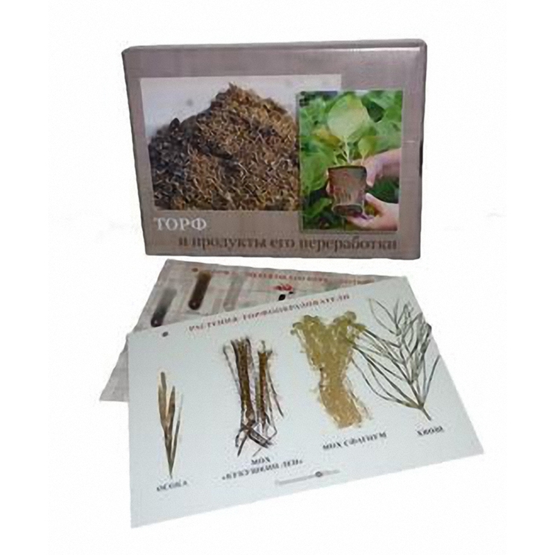 Коллекция «Торф и продукты его переработки» предназначена для использования в качестве демонстрационного материала при изучении химии, при изучении вопросов образования торфа и получения в процессе его переработки различных продуктов.