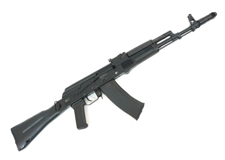 Массогабаритный макет автомата Калашникова (АК-74/АК-74М/АК12/АКМ) изготовлен на базе массогабаритного макета автомата Калашникова со стволом-болванкой ММГ-АК74М-М (ИЖ-184). В автомат интегрирован лазерный модуль, элементы питания и управляющая электроника.
