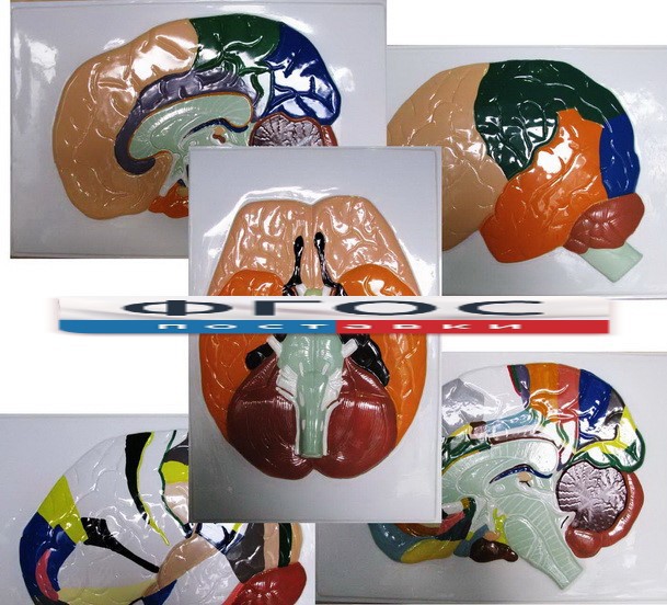 Модель барельефная "Доли, извилины, цитоархитектонические поля головного мозга" (5 планшетов)