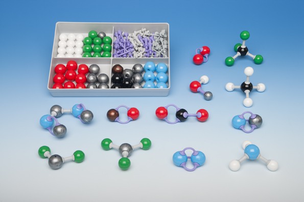 Комплект предназанчен для составления более сложных моделей молекул по предмету органическая и неорганическая химия. Комплект для учащегося. Состоит из 51 атома и 53 связей.