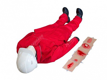 В комплект поставки манекена входят накладные силиконовые травмы и ранения различной степени тяжести с возможностью замены и установки на любую часть тела тренажер-манекена для отработки первичных навыков оказания первой помощи. Установка осуществляется при помощи резинок.